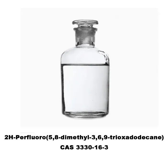 2H-Perfluoro(5,8-dimethyl-3,6,9-trioxadodecane) (CAS 3330-16-3) is a perfluoropolyether (PFPE) derivative with a molecular weight of about 400-450 g/mol. It is a colorless, transparent, and low viscosity liquid at room temperature. This compound has the characteristics of a typical perfluoro compound: high density (1.7-1.9 g/cm³), boiling point exceeds 200℃, and exhibits excellent thermal stability (resistant to high temperatures above 300℃) and chemical stability (resistant to strong acids, strong alkalis and oxidantes) . Su solubilidad es particularmente soluble y puede ser soluble en solventes fluorados (como perfluorohexane) y algunos éteres, pero es insoluble en agua, alcoholes e solventes de hidrocarburos .}