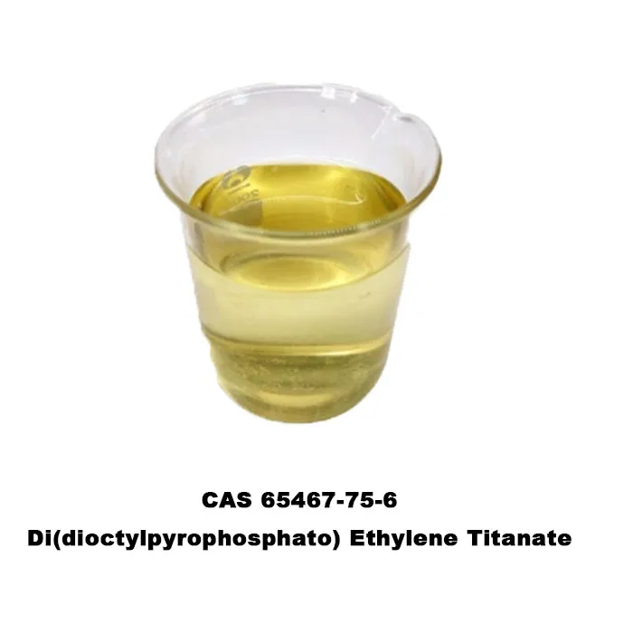 Di(dioctylpyrophosphato) Ethylene Titanate is a titanate derivative with a molecular weight of 1012.8 g/mol and a molecular formula of C₃₄H₆₈O₁₆P₄Ti. It is an amber to brownish red viscous liquid at room temperature with a density of 1.10–1.15 g/cm³. The compound is easily soluble in non-polar solvents such as toluene and xylene, but insoluble in water and will slowly hydrolyze in water. The substance has coupling, viscosity reduction and anti-settling functions, and is suitable for highly filled composite materials systems and remains stable during high temperature processing (>150 grados) .